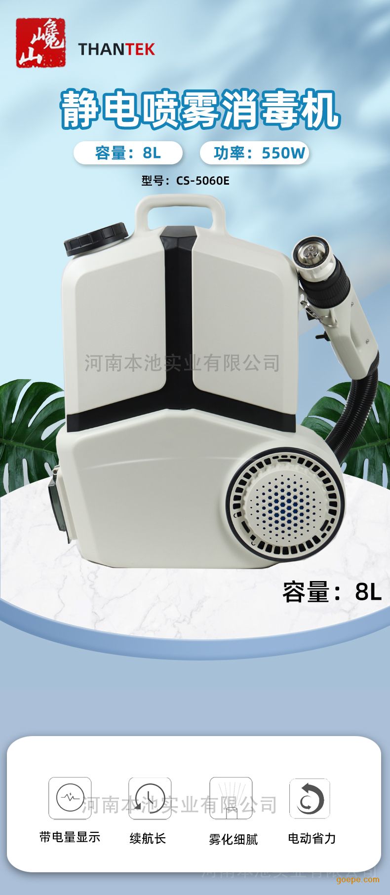 CS-5060E电动静电气溶胶喷雾器,背负式8L打药机,静风射程可达10米左右,可调节雾量,雾化细腻。