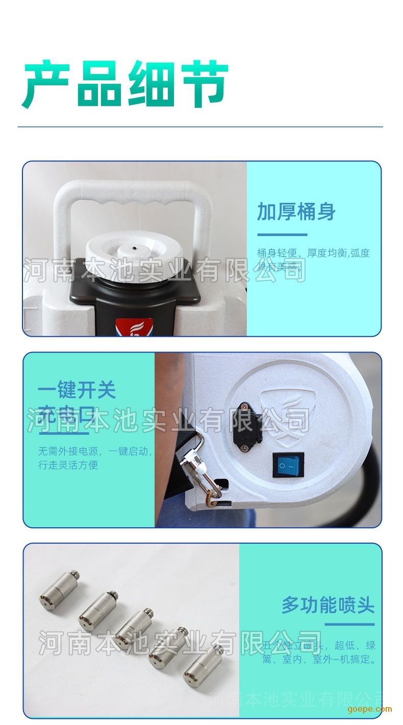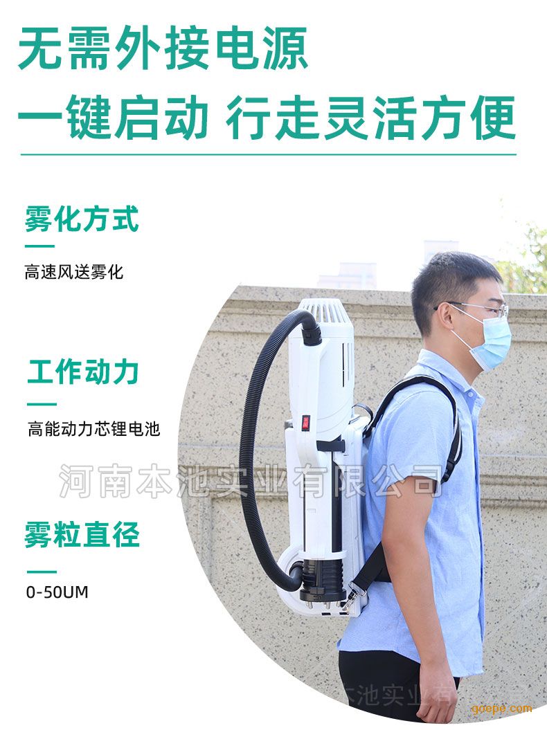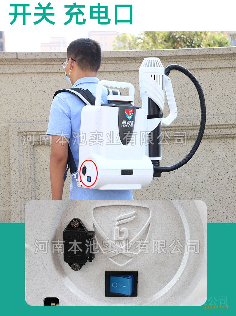 暴风雾BFW-10A背负式超低容量喷雾器电动喷雾器,无需外接电源,一键启动,行走灵活方便,雾化方式为高速风送雾化,工作动力是高能动力芯锂电池,雾化细致,噪音低,带电量显示屏,带大口径加水口,大容量10升,多功能陶瓷喷头,5个独立喷头可随意更换超低、绿篱、室内以及室外,一机搞定,采用高速无刷风机,智能自动水路,清洗循环系统,帮您解决清洗烦恼,使用方法简单,携带方便。