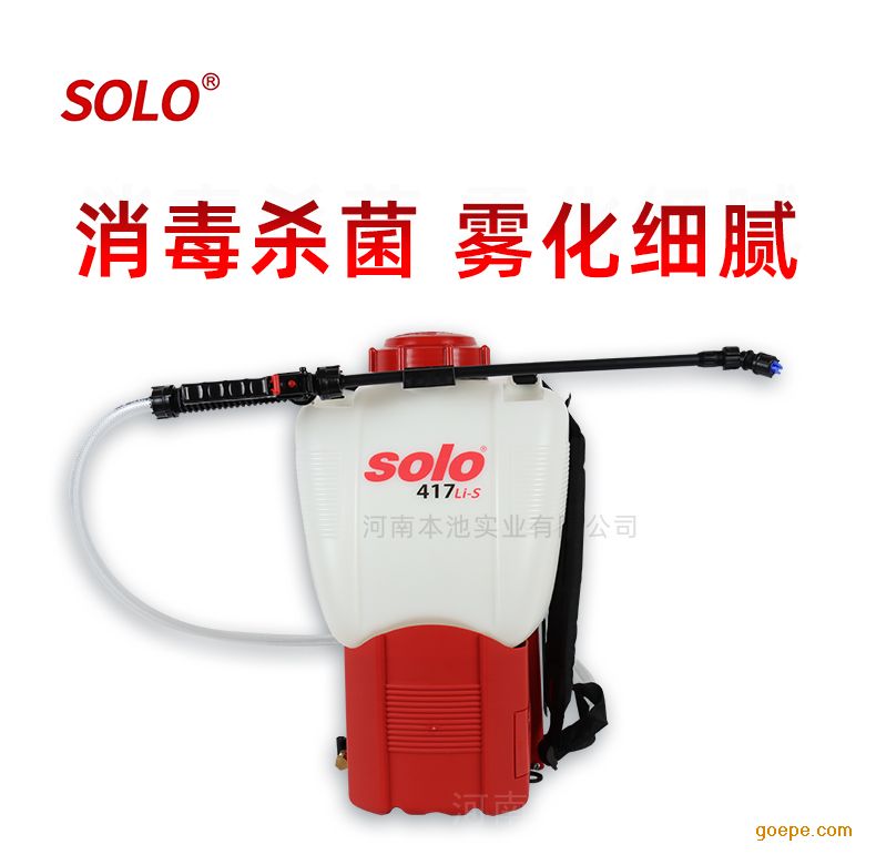 索逻SOLO417Li-s背负式电动常量喷雾器加厚桶身,锂电池,背负轻便,喷药消毒,平稳输出,雾化细腻,高压喷洒,轻松消杀。适用场景广泛,如:办公环境,学校食堂,餐馆,酒店,购物广场,高铁车箱,飞机机舱等。