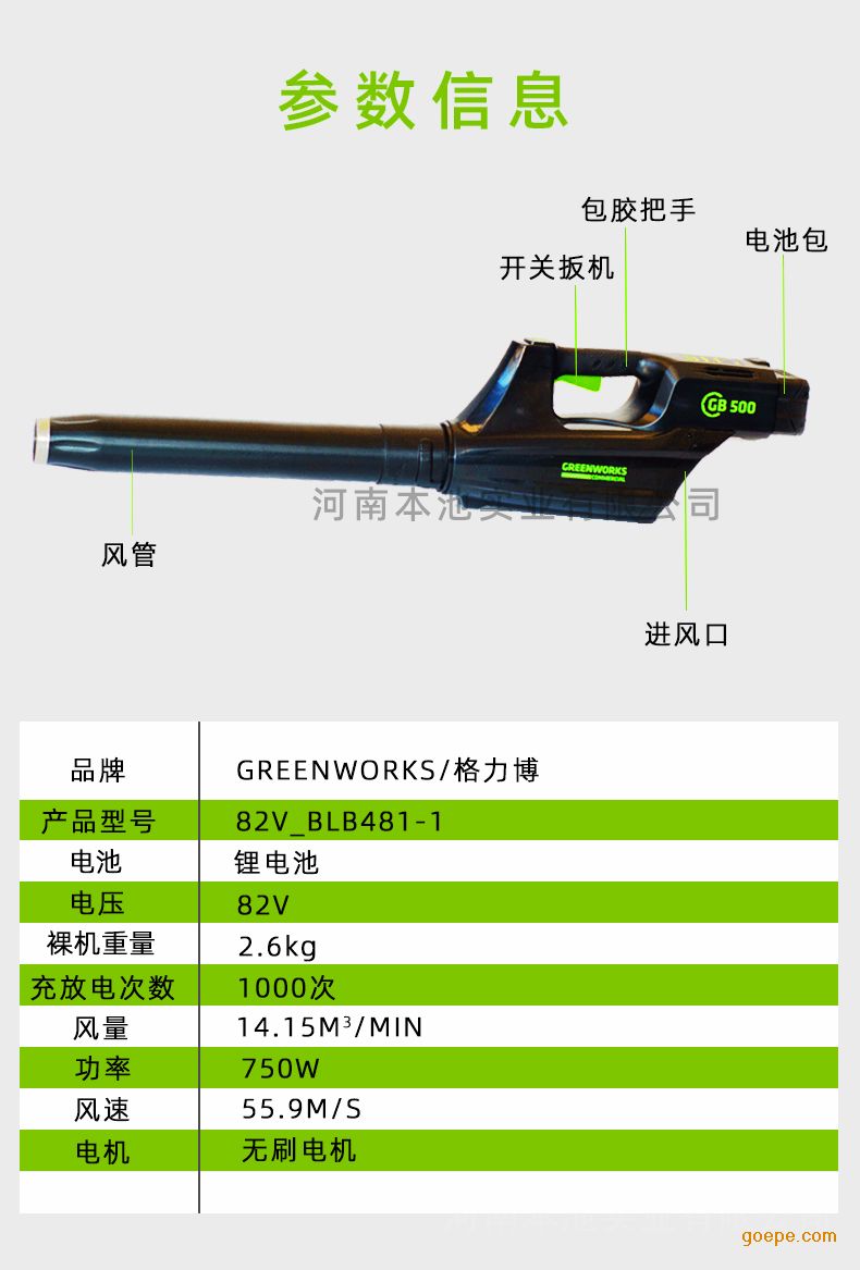 82V手提式电动吹风机格力博BLB481-1锂电吹风机吹尘吹雪机GREENWORKS吹风机