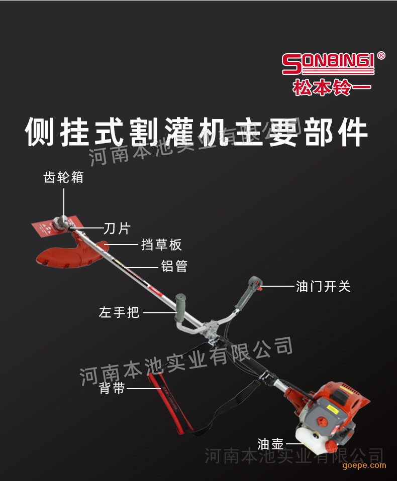 SONBINGI松本铃一GF543C手持侧挂式割草机森林消防打草机,单缸二冲程汽油动力割灌机,1.8KW大功率,重量轻,低油耗,噪音低,动力足,效率高,割草、割稻、开荒、松土一机搞定,多用途。